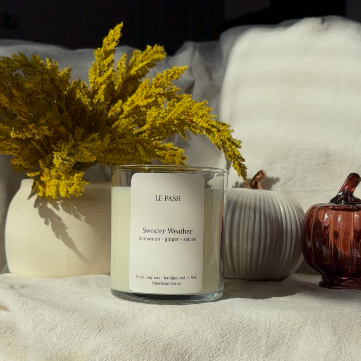 Le Pash Candles are made with 100% plant-based soy bean wax, sourced in NYC. Our blends are infused with safe, clean, non-toxic oils and finished with woven cotton wicks.